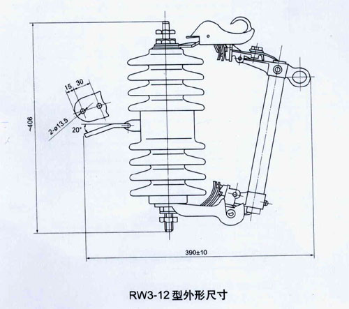 熔斷器由絕緣子和熔管兩大部分組成,在正常工作時(shí),通過(guò)熔絲將觸頭的活動(dòng)關(guān)節(jié)鎖緊,處于合閘位置。熔絲熔斷后,活動(dòng)關(guān)節(jié)失去張力,熔管在自重和彈力的作用于下,迅速跌落,形成明顯的隔離間隙。